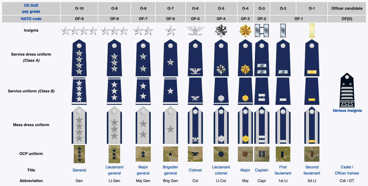O-8Major GeneralTümgeneralMaj GenMayıs Gen